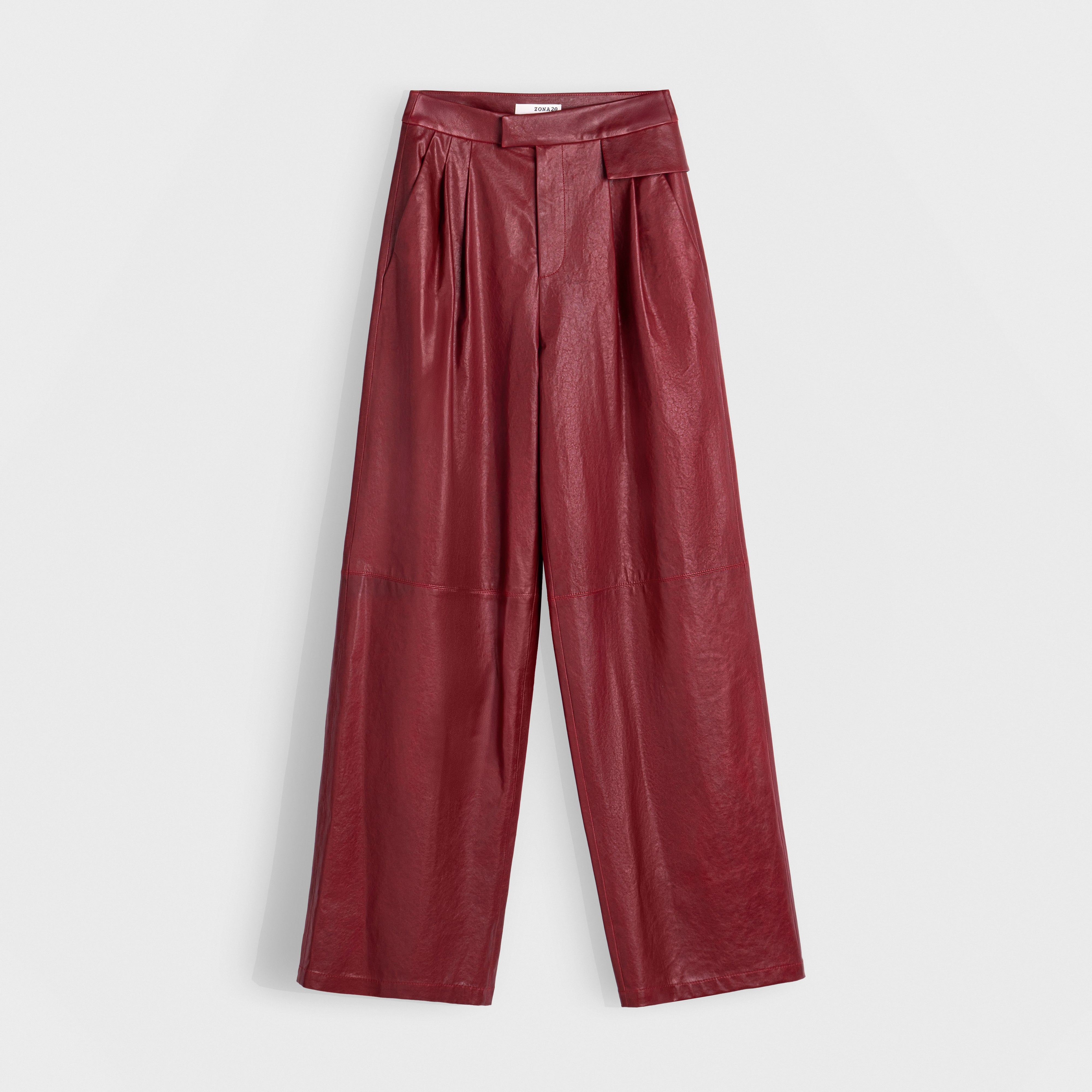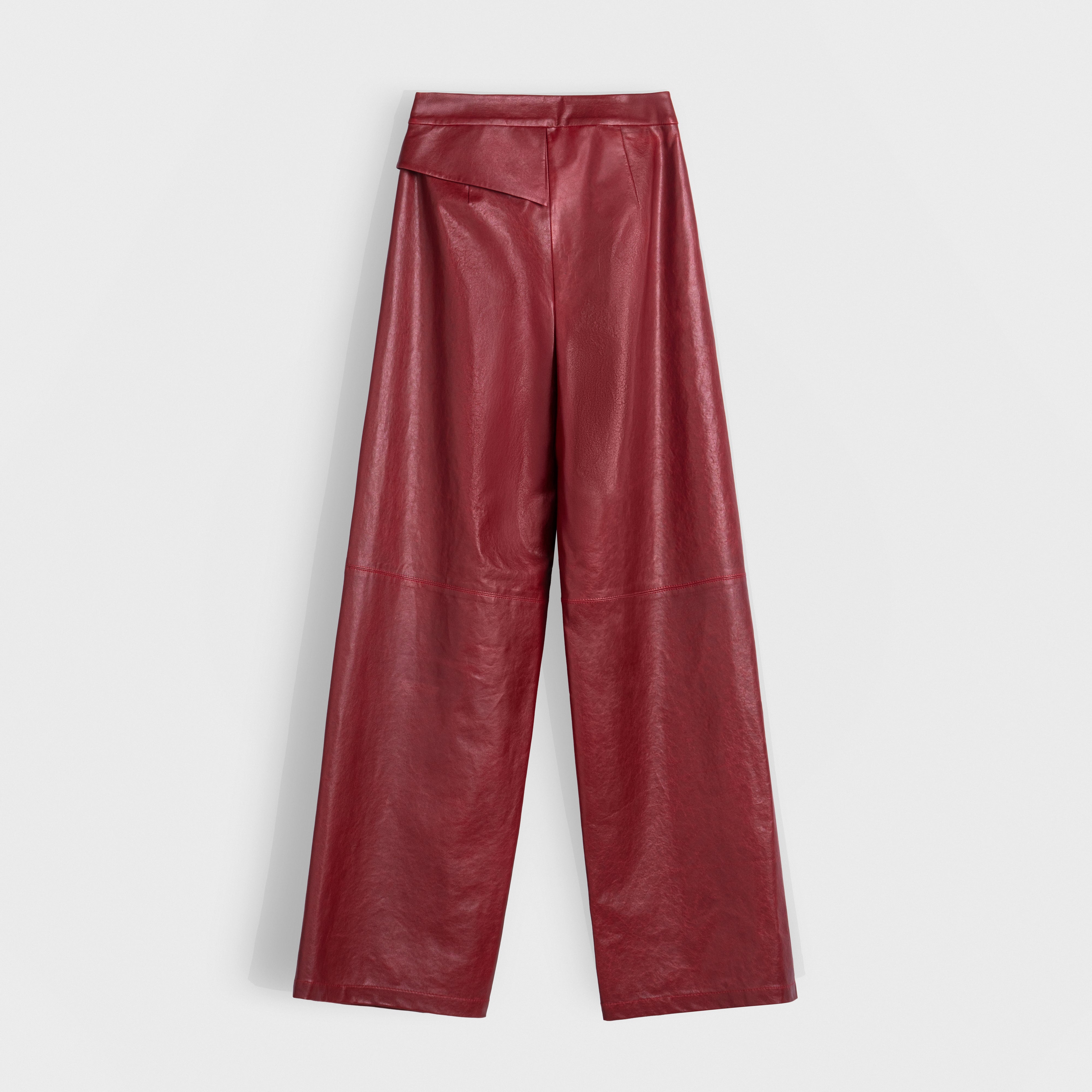 Curved-leg trousers featuring smooth, sculpted lines and balanced proportions. Crafted from supple sheepskin leather and fully lined in cupro for enhanced comfort and fit. The merlot red tone feels soft yet strong, adding depth to a composed, refined look.